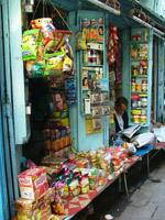 Scattered liberally around are lingas, murals of Hanuman decked with garlands of flowers, orange-painted statues of Ganesh; religion is never far away in Varanasi. One street was obviously the market, lined by cross-legged women surrounded with fruit and vegetable. Little shops - rooms with one side open to the street - sold sundry items, or offered haircuts and shaves. Ornate doorways offered glimpses through to courtyards, or sometimes temples, and I couldn't resist peeking inside. After a time wandering through the streets I recognised a familiar sign, and surprised myself by finding my way back to the hotel.