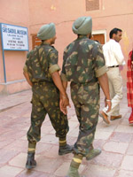 The night train from Delhi was almost empty and I slept well, waking just in time for my stop. At the station a number of rickshaw-wallahs all wanted to take me to Harasar Haveli, for a mere ten rupees - which is a sure sign the place pays commission. I figured I'd take the ride then give them the slip and stay somewhere else. When I got there, though, the place looked pretty impressive so I thought I'd check it out, expecting it to be out of my price range. The personable owner showed me to a lovely room for just 250 Rs. It had a mattress that was inches thick, rather than centimetres, and the large bathroom was spotlessly clean, with gleaming taps; I didn't have the cheek to barter, and said yes.